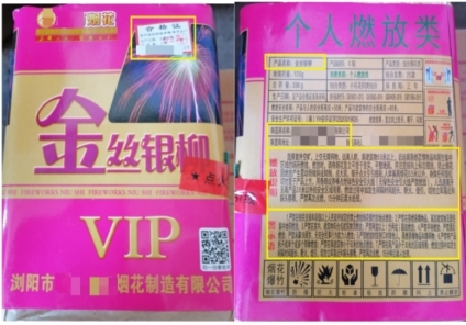 选购包装上包含制造商名称及地址、含药量、警示语、燃放说明、生产日期、保质期、执行标准编号(如GB 10631-2013或GB 10631-2025《烟花爆竹安全与质量》,2025版标准于2026年5月1日实施)等基本信息的产品。