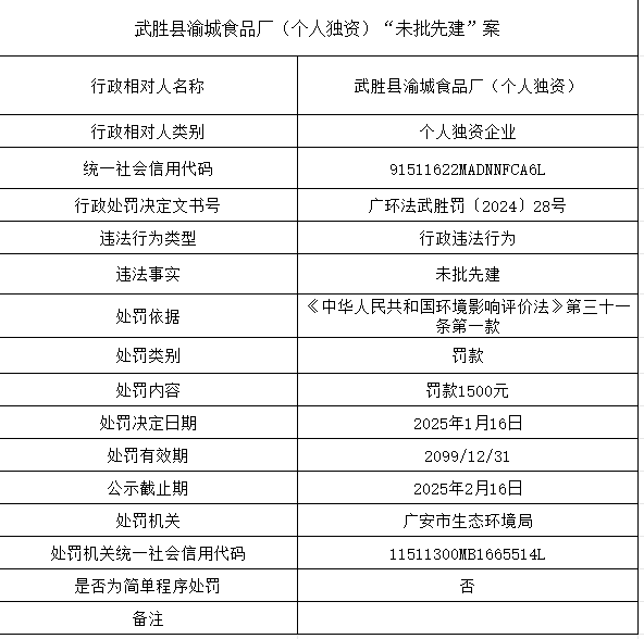 广安市武胜生态环境局行政处罚公示