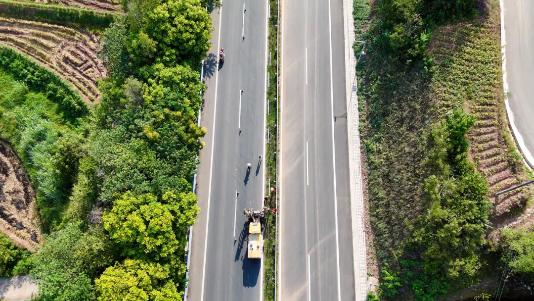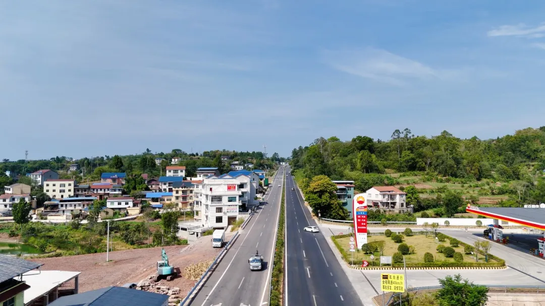 据介绍,G350武胜河西段全长18.3公里,以嘉陵江二桥石湖路路口为起点,延伸至宝箴塞镇,路面宽23.5米,采用双向四车道设计。项目建设严格遵循从“通”到“畅”再到“美”的高标准,涵盖路基施工、路面铺设、桥涵搭建、沿线绿化及交通安保设施等,全方位为通行安全与舒适保驾护航,建成后能充分满足日常通勤、货运物流等多样化通行需求。